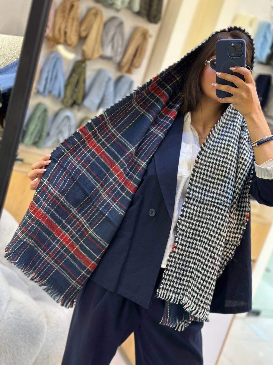 شال موهر چهارخونه دورو وارداتی تک رنگ سرمه ای چهارظرف ریشجهت خرید عمده با شماره ی 09120369414 تماس حاصل فرمایید